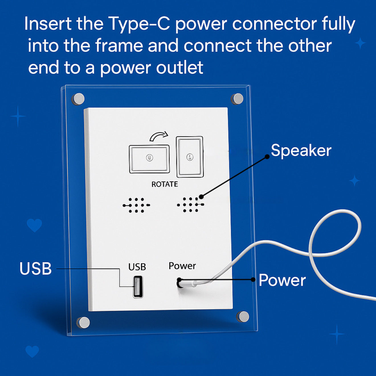 Crafted with care and built to last, our digital frame makes it easy to display photos and videos of your loved ones no technical skills needed. Simply plug it in, connect to Wi-Fi, and upload your favorite moments instantly.